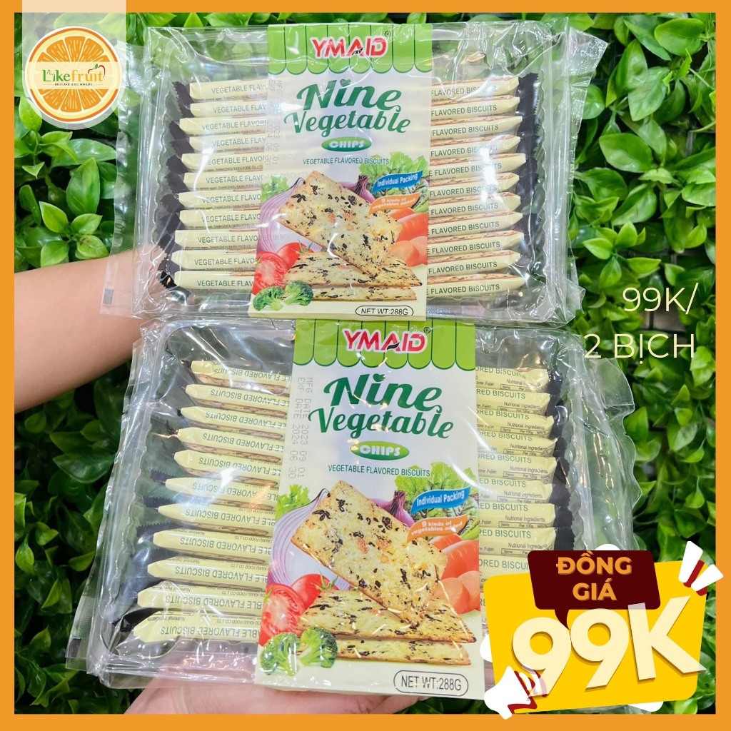 ️Xuất xứ : Hongkong Bánh hoa quả quy xốp Nine Vegatable biscuits YMAID túi 288gr (22 gói) Thành phần: Bột mì, đường, dầu cọ, hành tươi, bột cà chua, bắp cải, bông cải xanh, hành tây, cà rốt, rong biển, rau bina, mè trắng, mè đen, muối, phụ gia ăn được Thông tin dinh dưỡng: Năng lượng: 2254kj (27%) Protein: 6,4gr(11%) Chất béo: 30gr (50%) Chất béo chuyển hóa: 0gr Carbohydrate: 60,9gr (20%) Sodium: 583mg (29%) Bảo quản nơi khô ráo và thoáng mát, tránh ánh nắng. Sản xuất bởi: Công ty TNHH thực phẩm Shangke Hongkong Xuất xứ: Hong Kong Thời gian sử dụng: 10 tháng kể từ ngày sản xuất. Ghi chú: Mẫu mã bao bì có thể thay đổi tùy thuộc nhà sản xuất
