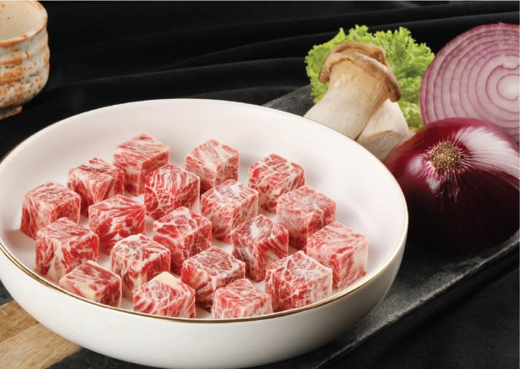 Thịt bò mềm tan trong miệng, béo ngậy mùi sữa được cắt sẵn miếng vuông rất đẹp, chế biến nhanh, gọn, tiện lợi.