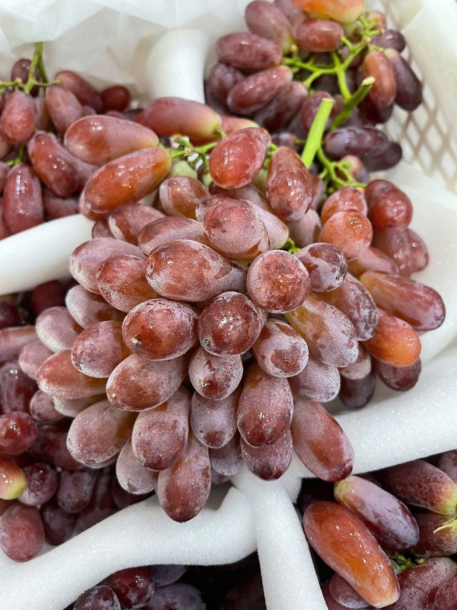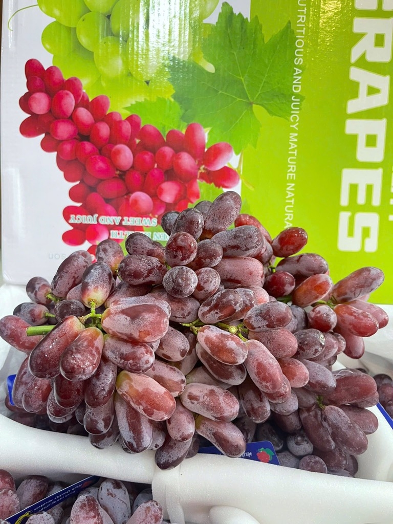 Quả nho dài, màu đỏ tím, vỏ mỏng.
