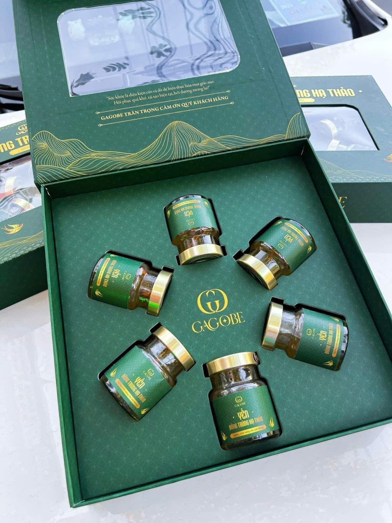Sản phẩm Yến Đông Trùng Hạ Thảo Gagobe được sản xuất tại Việt Nam, từ nguồn nguyên liệu yến thật 100% kết hợp đông trùng hạ thảo nuôi cấy chất lượng cao.